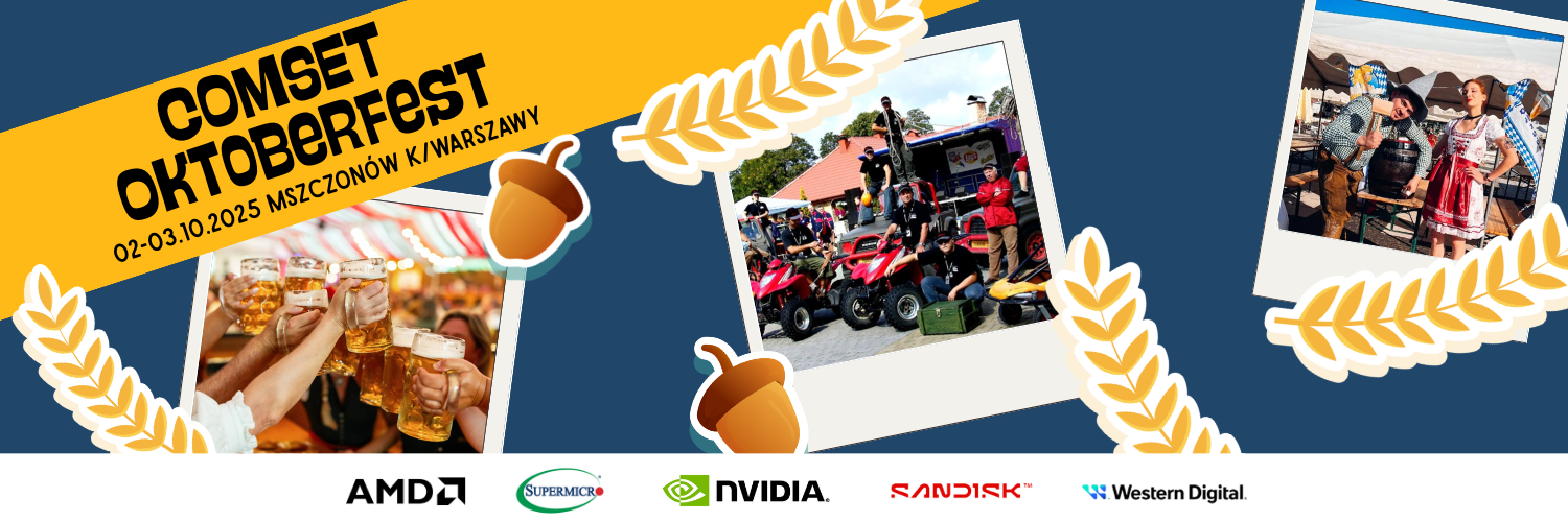 Spotkajmy się 02-03.10.2025 r. w hotelu Panorama w Mszczonowie. Nie może Was zabraknąć podczas tego niesamowitego wydarzenia. Pierwszego dnia zapraszamy na inspirujące wystąpienia takich marek jak: NVIDIA, AMD, Sandisk, Supermicro, Western Digital. Poza częścią prelekcyjną będzie okazja do rozmów z producentami przy ich stoiskach. Wieczorem czeka wszystkich niepowtarzalna kolacja w stylu Oktoberfest. Nie zabraknie na niej wspaniałej muzyki, wyśmienitego jedzenia oraz bawarskiego klimatu! A drugiego dnia, w specjalnej Teamstrefie czekać będą na Was wyjątkowe wyzwania i emocje - m.in. jazda Suzuki Samurai oraz pojazdami PowerTurn, strzelanie z łuków, a także transport niebezpiecznego ładunku i wiele innych niespodzianek, które zapewnią sporą dawkę adrenaliny i dobrej zabawy. Nie możecie tego przegapić!