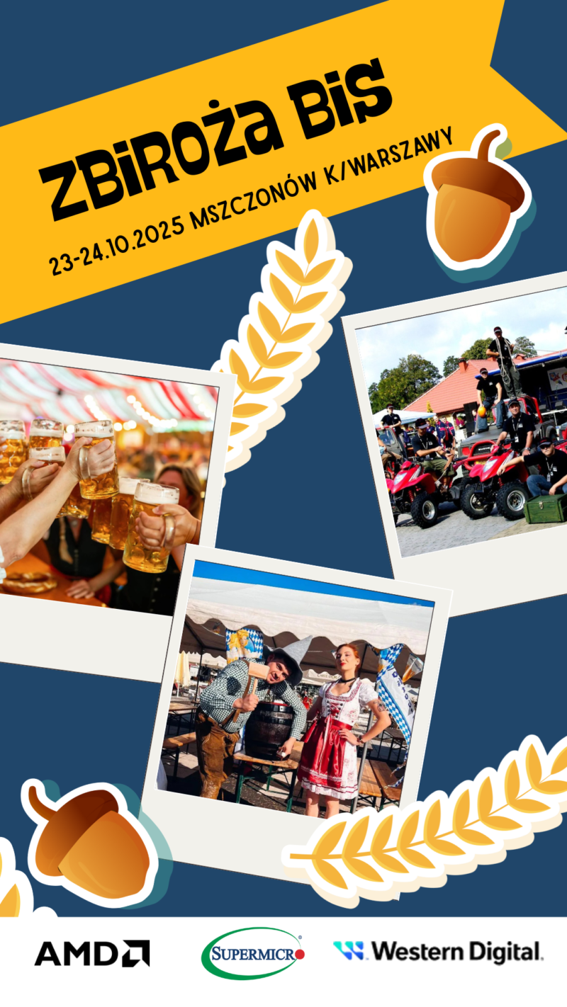 Już 23-24.10.2025 r. spotykamy się na konferencji „Zbiroża bis” w Mszczonowie. Nie może Was zabraknąć podczas tego niesamowitego wydarzenia. 23 października zapraszamy do TeamStrefa Zbiroża, gdzie czekać będą na Was wyjątkowe wyzwania i emocje m.in. Jazda Suzuki Samurai, Powerturny, strzelanie z łuku i inne atrakcje, które zapewnią sporą dawkę adrenaliny i dobrej zabawy. Następnie czekać Was będą inspirujące wystąpienia w Hotelu Panorama w Mszczonowie - AMD, Supermicro oraz Western Digital. Poza częścią prelekcyjną będzie to świetna okazja do rozmów z producentami. Wieczorem czeka wszystkich niepowtarzalna kolacja, na której nie zabraknie wspaniałej muzyki, wyśmienitego jedzenia oraz doskonałego klimatu! Nie możecie tego przegapić!